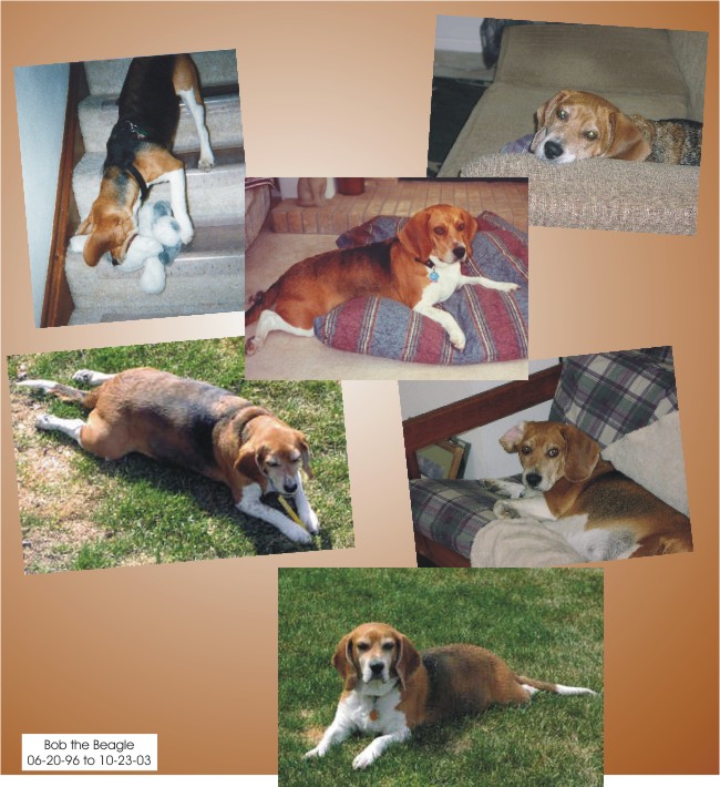 Remembering Bob the Beagle June 20, 1996 to October 23, 2003 Bob the Beagle, faithful loving companion, may be gone but he lives on in our hearts and memories.